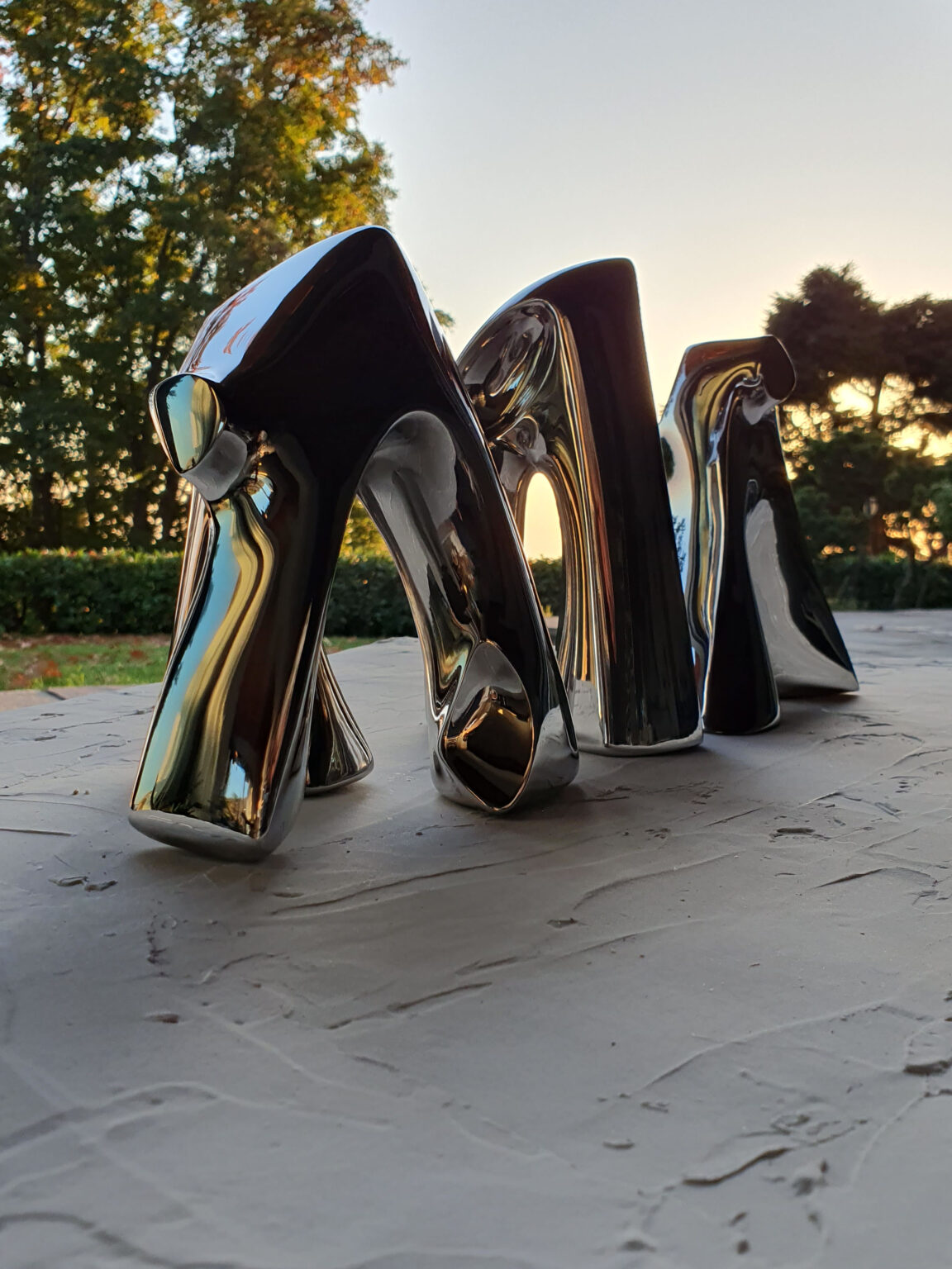 Stainless steel sculpture, polished.