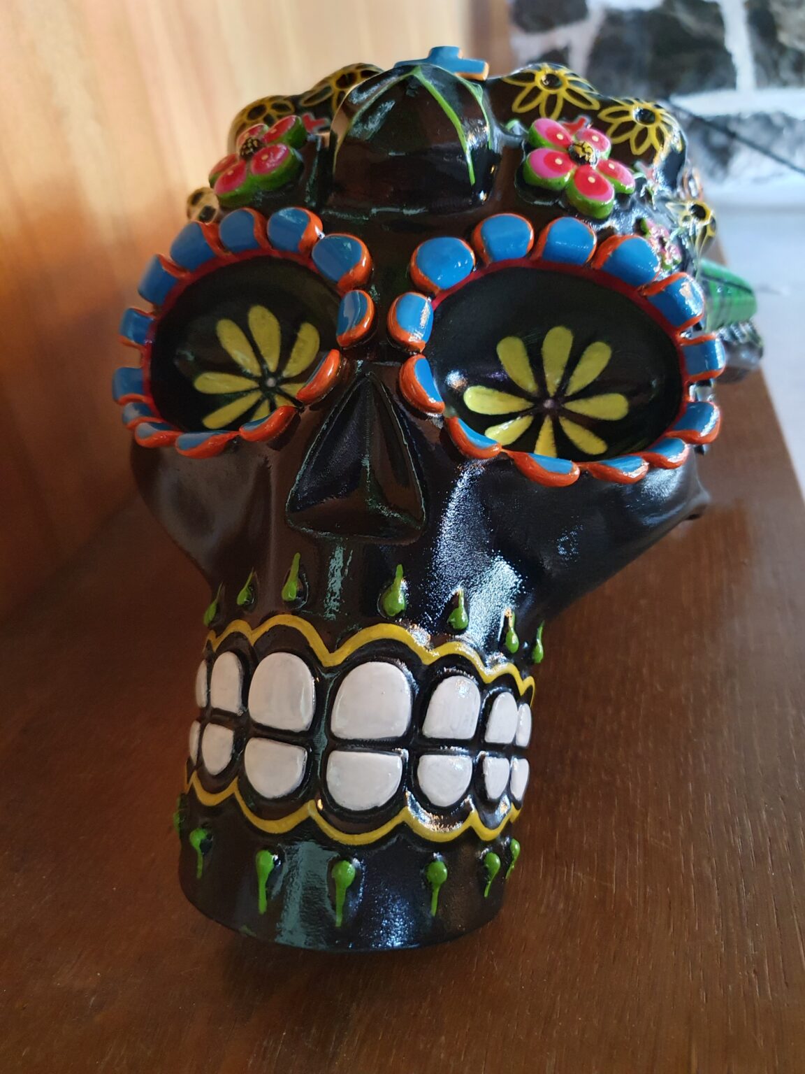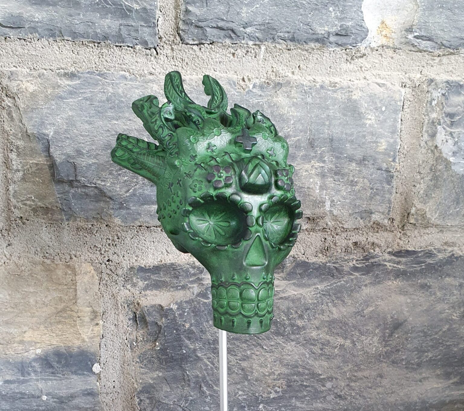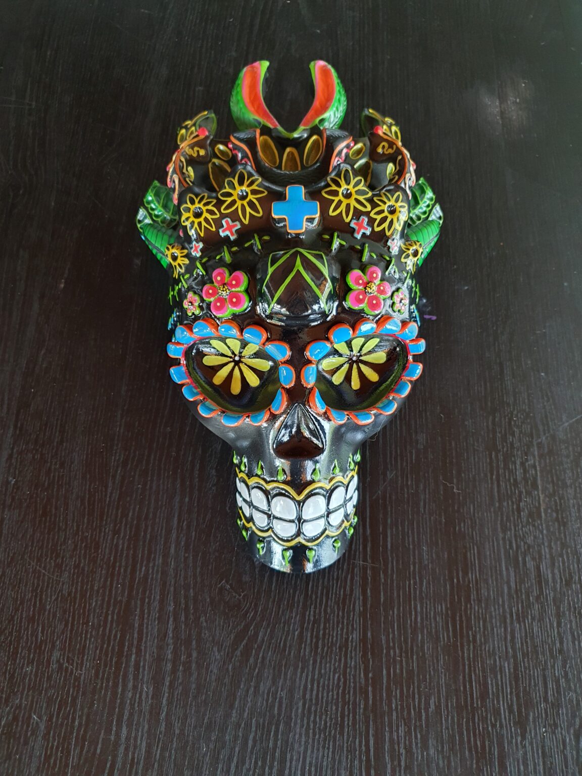 Skull Scultpure inspired by Day of the Dead calaveras.