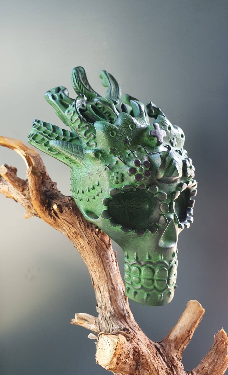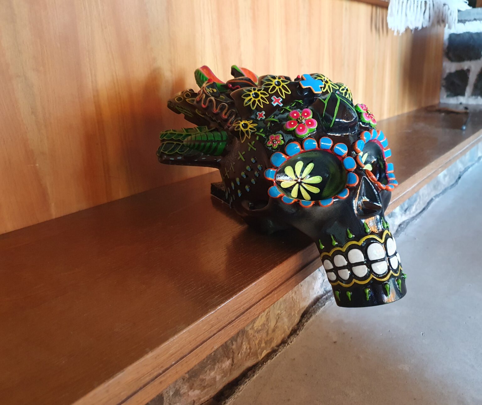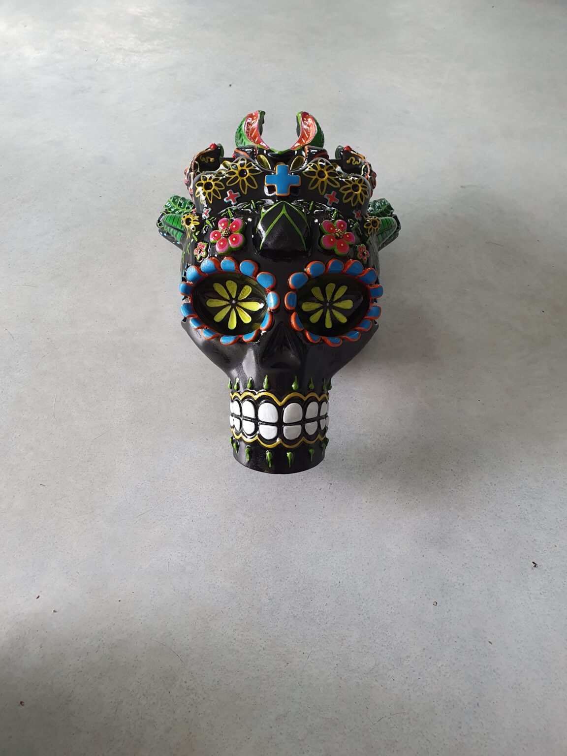 Skull Scultpure inspired by Day of the Dead calaveras.